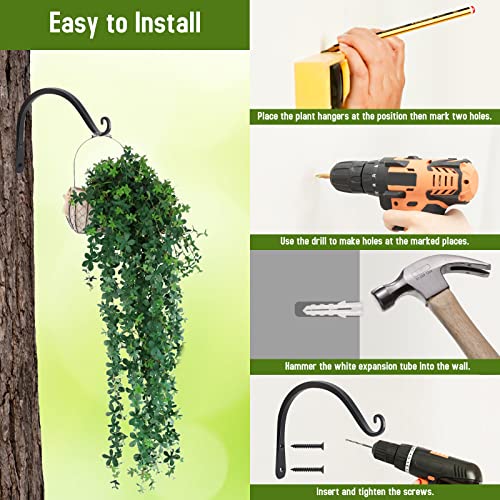 FEED GARDEN Wall Hook Hanging Plant Bracket – 8 Inch (2 Pack, Black)