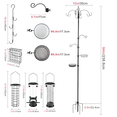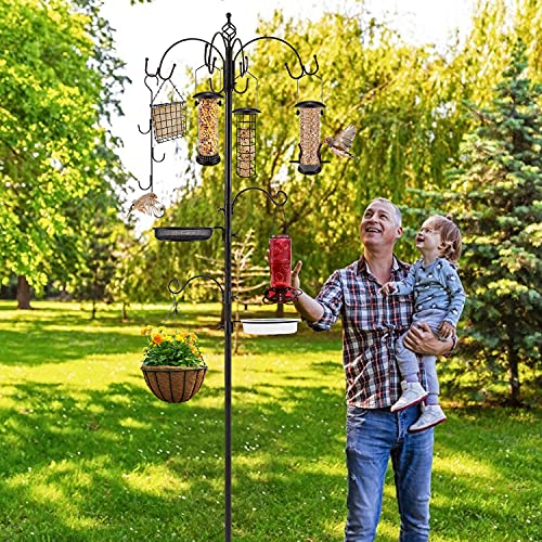 • Includes 6 hooks and 6 different feeders: Perfect for hanging large bird feeders and a round mesh feeder for seeds and peanuts.